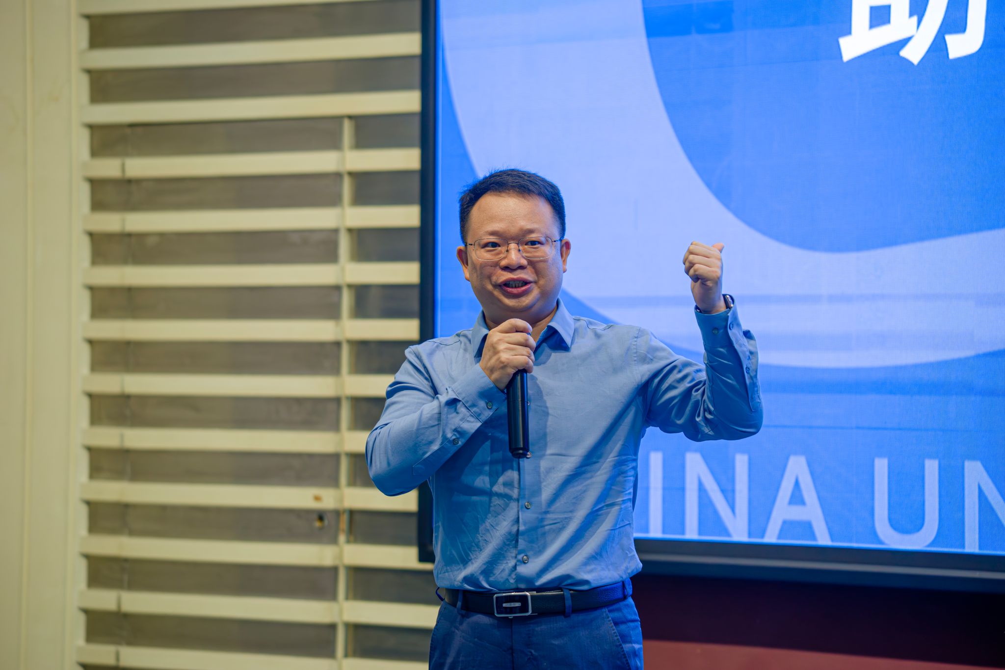 何春炎致辞。他回顾了“蓝凌杯”创新开发大赛筹备与举办的历程,高度赞扬了参赛学生取得的进步与成绩,向所有参加比赛、收获成长与经验的选手们表达祝贺,并对他们的未来发展寄予厚望,期待能和同学们在蓝凌相会。