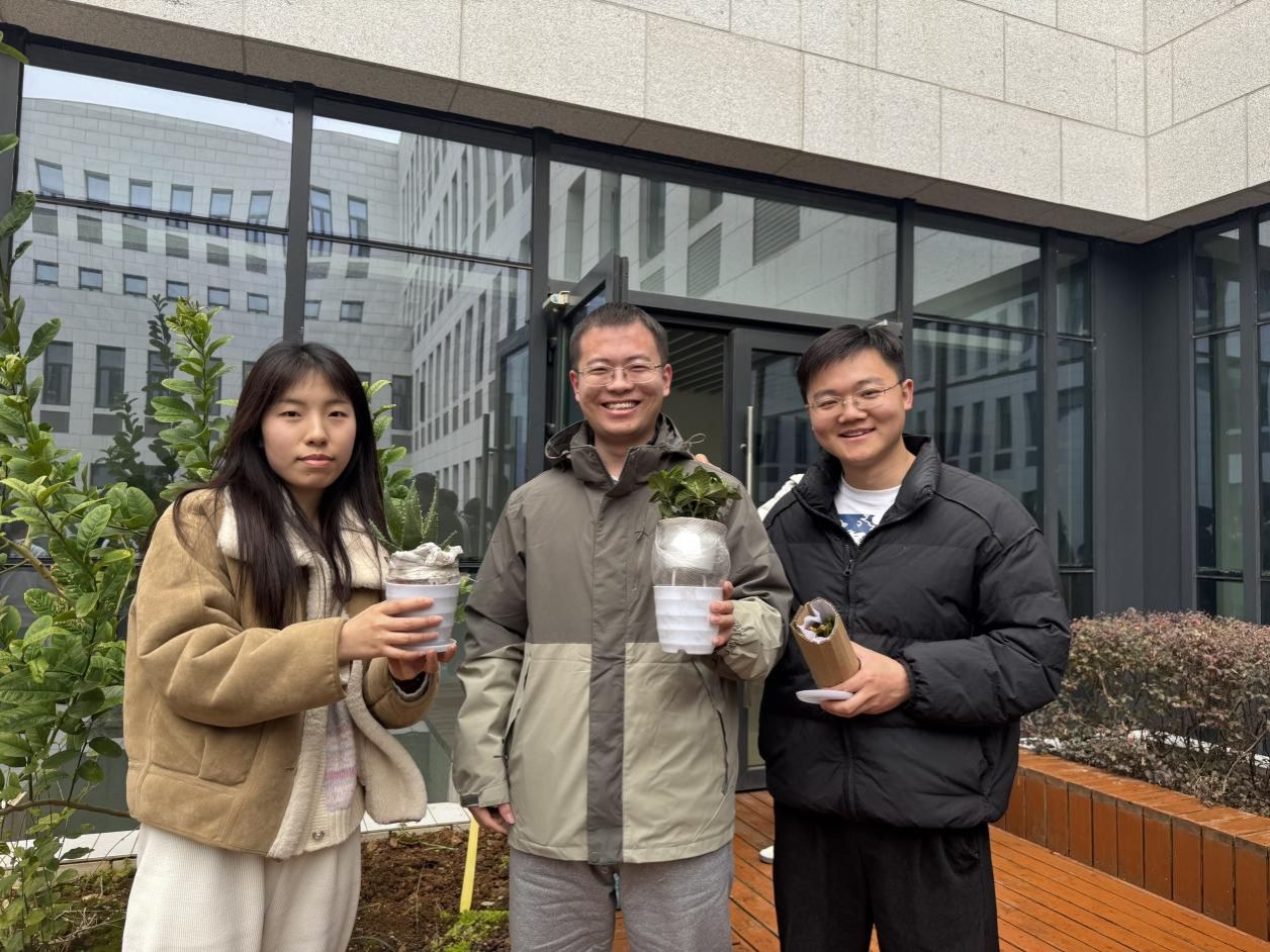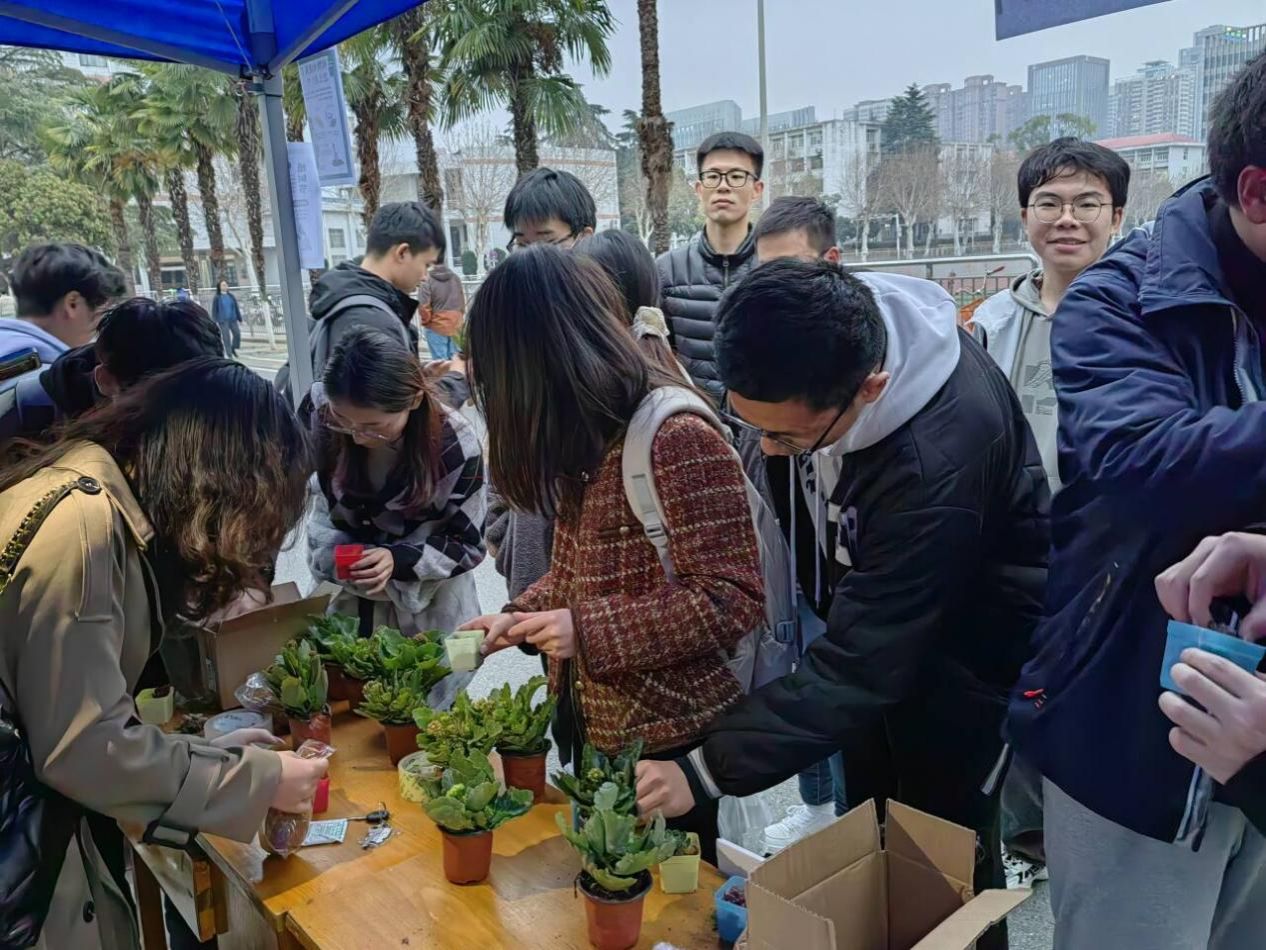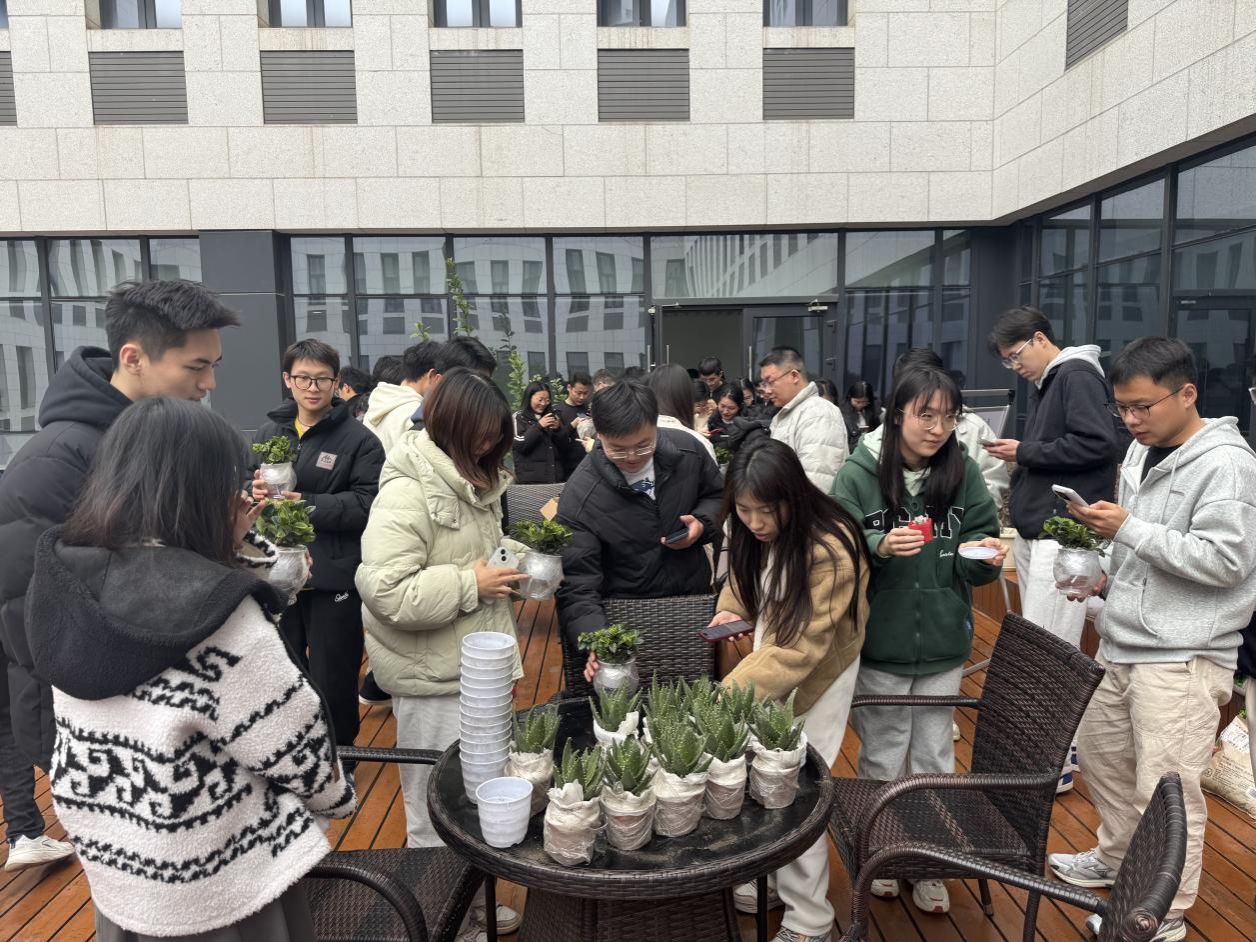 师生们积极参与趣味答题活动,现场气氛热烈。题目涵盖植物的种类、生长习性、生态价值等多个方面,既有简单的科普问题,也有专业知识的探讨,大家通过知识竞答,领取自己心仪的绿植,一株株翠绿欲滴,生机勃勃的绿植瞬间成为同学们的“新宠”。同学们手持绿植开心合影,定格收获的喜悦。