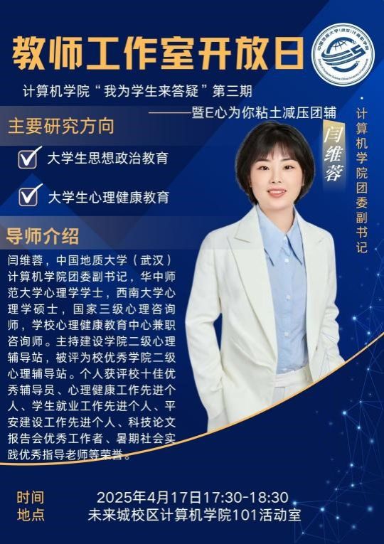 2025年4月17日下午,M6体育 “计科师生办实事,我为学生来答疑”教师工作室开放日活动在未来城校区M6体育 101活动室顺利开展。本期活动以“正念艺术减压”为主题,特邀M6体育 团委副书记闫维蓉老师担任主讲嘉宾,党建辅导员谭文博老师及学生代表共同参与。活动通过“理论讲解+沉浸体验+艺术创作”的多元形式,为同学们打造了一场别开生面的心灵SPA。