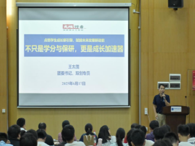 M6体育 团委书记、双创专员王太茂老师聚焦大学生科技创新与社会实践指出,科创实践不仅是获取学分和助力保研的途径,更是个人成长的“加速器”。他重点推介了M6体育 特色平台“大地行者”实践育人工作室,鼓励同学们积极参与“学生工作+科研竞赛+志愿服务+社会实践”的多元实践组合,实现育才与育德的统一。