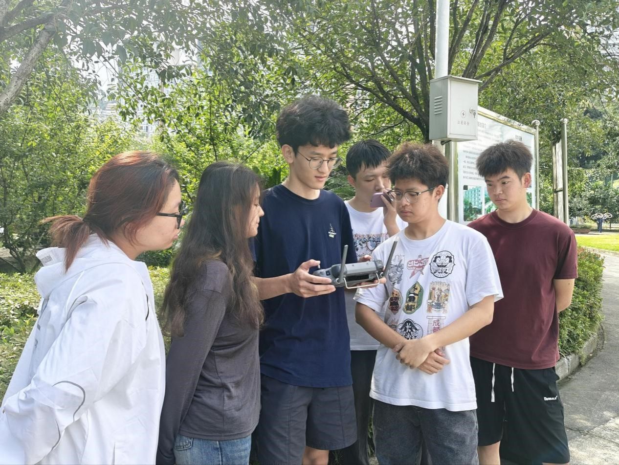 教学当天,各组先行学习的同学立刻化身为“小老师”,带着本组成员围在无人机旁展开实操教学。基础操作熟练后,张志庭老师召集全体同学,聚焦“地质勘察中的航线规划”展开深度教学。