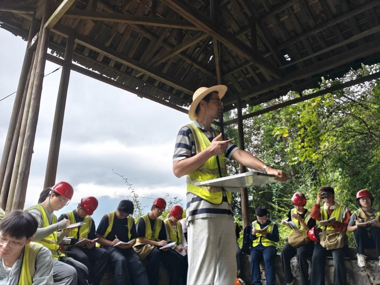 我们分组行动,有人手持地形图,在雨中仔细辨认地形;有人使用罗盘测量岩层产状,雨水打湿了野簿,我们便用塑料袋小心包裹;有人采集岩样,即使手指被雨水冻得发麻,也依然认真记录岩样信息。大家相互搀扶,相互提醒,没有人抱怨,没有人退缩。当我们成功在地形图上定出多个观测点,完成地质数据采集时,雨中的山野仿佛也为我们送上了无声的喝彩。