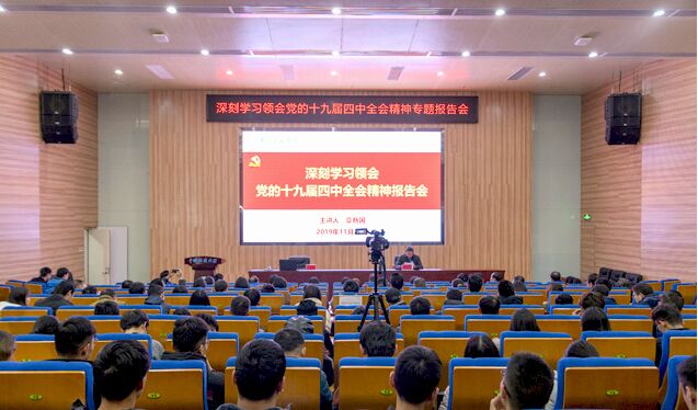 (记者霍少孟)11月28日,深入学习领会党的十九届四中全会精神专题报告会在M6体育 报告厅举行,湖北省委宣传团成员、湖北省委政策研究室副主任章新国同志作宣讲报告,M6体育 全体院领导、院直支部、信安支部、网工支部、部分学生支部的党员和新校区各M6体育 260余名干部师生聆听报告。校党委副书记、纪委书记成金华主持报告会。
