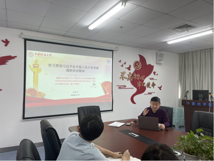 李国昌强调,习近平总书记在人大考察调研时发表的重要讲话,是一篇闪耀马克思主义光辉的重要文献,我们要加强理论学习,读原话,学原理,落实立德树人根本任务,自觉肩负起培养社会主义建设者和接班人的使命,增强政治敏锐性、思维敏捷性、信念坚定性和行动自觉性;要做一流学问,建一流团队,育一流人才,扎根中国“三全育人”;要弘扬计科先锋精神,爱国自强,精益求精,艰苦奋斗,团结拼搏,为M6体育 高质量发展贡献力量。