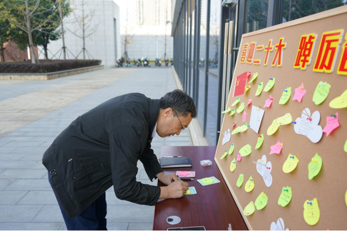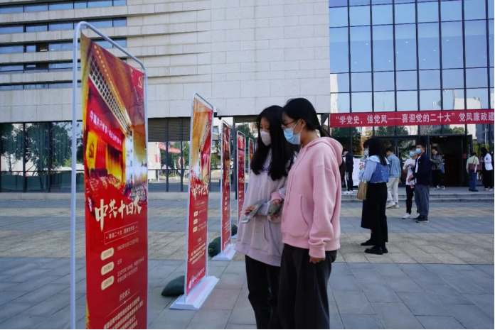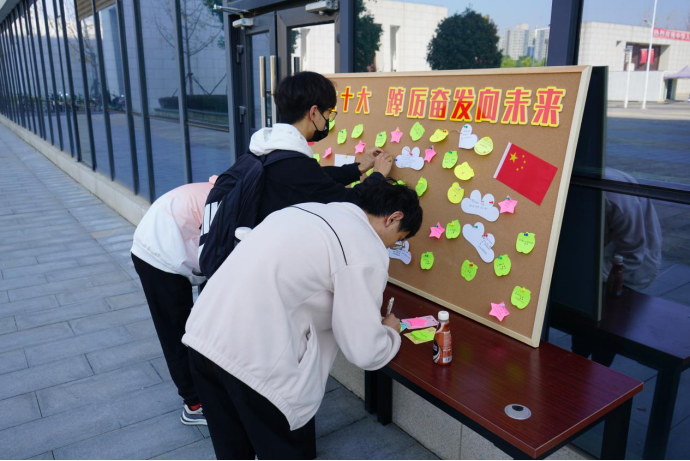 16日上午,M6体育 策划制作的“党风廉政建设”宣传展板,中国共产党历次党代会重点内容学习海报以及“喜迎二十大,踔厉奋发向未来”祝福寄语墙在M6体育 一楼展出,引发广大师生的驻足学习、热议。其中,历次党代会学习海报以色彩鲜明的图文形式,生动描绘了从党的一大到十九大的历史背景和意义,启发师生们切身感受“学党史,强党风”的深刻内涵。在“喜迎二十大,踔厉奋发向未来”祝福寄语墙上,师生们留下了“凝心聚力新时代,团结聚力新征程”、“时间砥砺前行,岁月见证初心”、“青春向党,不负众望”的美好祝福和铮铮誓言。