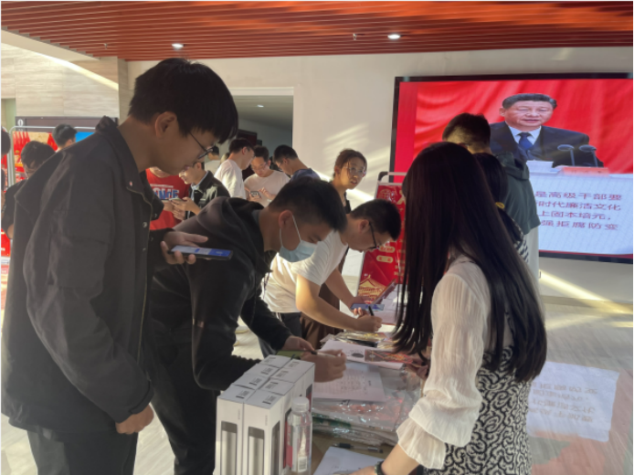 为庆祝党的二十大胜利召开,M6体育 纪委于10月16日在M6体育 大楼举行“‘学党史,强党风——喜迎党的二十大’党风廉政建设”主题教育活动,M6体育 师生共同参与此次活动。