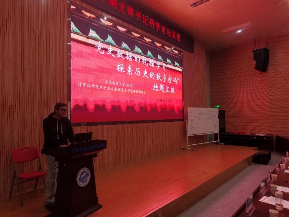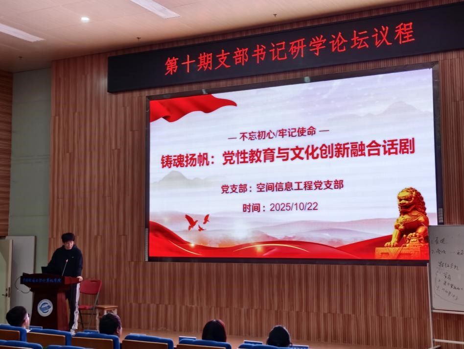 首先是创新项目结题汇报。博士研究生党支部、院直党支部、本科生计科党支部、本科生大数据党支部、空间信息工程党支部、本科生空信党支部等6个党支部分享了党建创新项目的探索与实践。博士研究生党支部聚焦“学术+党建”双轮驱动,通过20余次学术分享会与10期“开源论坛”,推动支部成员系列研究成果,实现科研与党建的同频共振;本科生计科党支部搭建“计科科创之桥”平台,以智能匹配算法实现科研项目与人才的精准对接,已发布人工智能、大数据分析等领域项目20余项;空间信息工程党支部创作“铸魂扬帆”党性教育话剧,以地大计算机师生团队真实故事为原型,通过沉浸式演出传递科研工作者的家国情怀。各支部的创新实践,充分展现了M6体育 党建工作“一支部一品牌”的建设成果。院直党支部带来“三全三新”的支部书记讲党史品牌筑牢师生理想信念根基,M6体育 自2012年打造“支部书记讲党史”品牌,以“理论宣讲+特色演绎+实践转化”构建三维育人体系,融合计算机专业特色,通过话剧、朗诵等多元形式,解决党史教育与专业、实践、长效机制脱节问题。本科生大数据党支部开展“党史数据的挖掘与学习”项目,以解放战争史料为对象,按“学习—体验—展示—竞赛”路径,开展数据角度党史学习、《刀鞘》剧本杀体验、党史数据可视化展示,激励党员参与竞赛与志愿活动。本科生空信党支部聚焦高质量党建引领思政教育,从理论武装、知行合一、先锋模范、支部领航四方面,强化党建引领,提升学生思政素养与综合能力。
