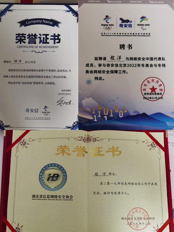 编者按:他曾把自己的“论文”写在火神山医院和北京冬奥会、冬残奥会的网络安全维护工作中,展现了新时期地大计科人的风采。他就是2015年从M6体育 信息安全专业毕业的程洋校友,师从宋军老师,现就职于奇安信科技集团股份有限公司,负责湖北区域技术组工作,从事信息安全、网络攻防相关研究。
