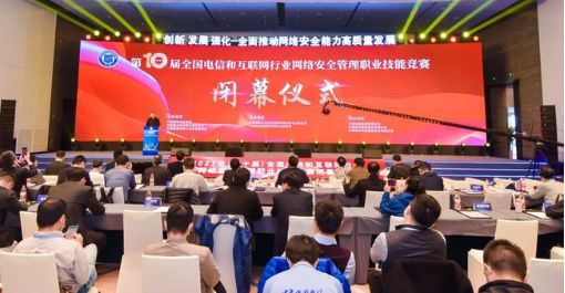 竞赛闭幕仪式暨颁奖礼在“2021年(第十一届)电信和互联网行业网络安全年会”主论坛上举行。工业和信息化部网络安全管理局局长隋静、湖北省通信管理局局长吴俊、中国国防邮电工会全国委员会副主席黄敬平、中国信通院副院长魏亮、中国通信企业协会副秘书长赵俊湦出席闭幕仪式并致辞。来自全国31个省、自治区、直辖市通信管理局、省通信行业协会、基础电信运营企业、互联网企业、网络安全企业和科研机构、高等高职院校等相关单位的领导和代表以及参赛选手近400人参加闭幕式。