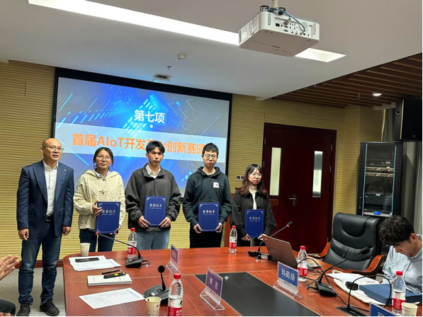 陈虹雨经理介绍了小米实训箱平台。周茂华总经理向M6体育 四位同学颁发了2022年AloT开发平台创新赛获奖证书。