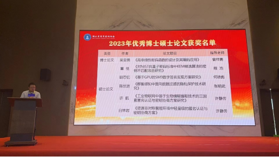 湖北省商用密码协会一届二次会员大会于2023年12月27日在武汉国家网络安全人才与创新基地成功召开。M6体育 2022届毕业生覃悦同学的硕士毕业论文《对NIST抗量子密码标准中KEM候选算法的密钥不匹配攻击研究》在会上荣获2023年度优秀硕士论文奖,指导教师为程池老师。