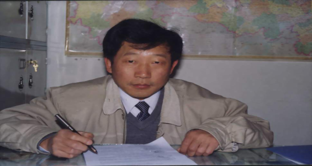 计算机系主任康立山指导参加挑战杯赛的学生(2004年5月)